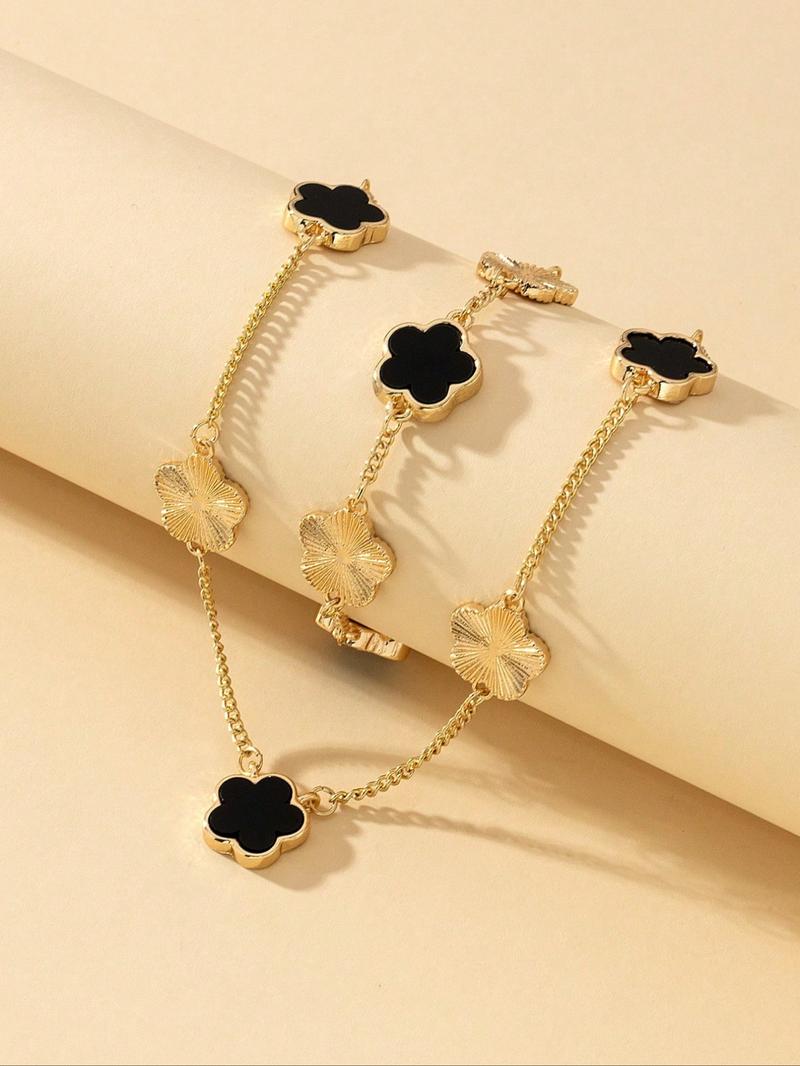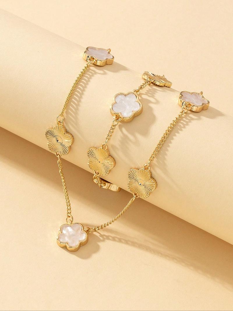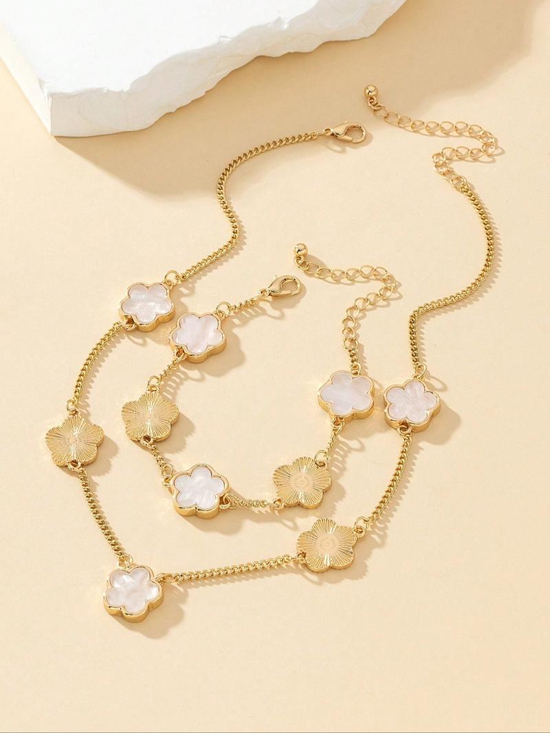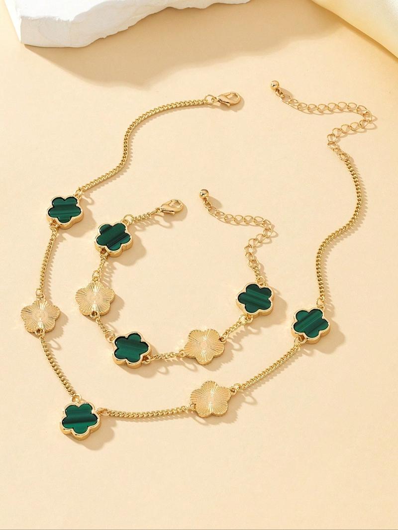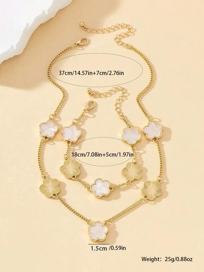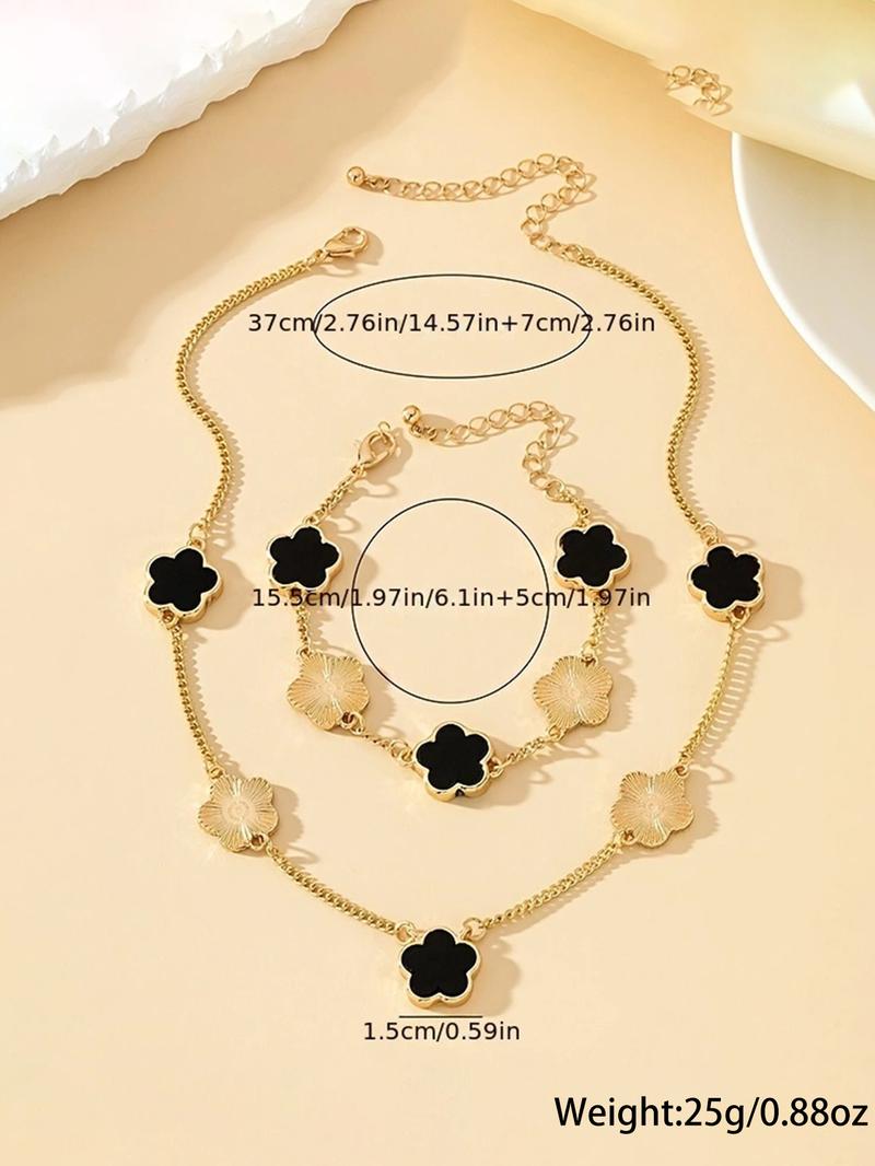【Flower Charm Set】: Crafted with a distinct flower charm design, this jewelry set includes a pendant necklace and bracelet that stand out in a crowd.